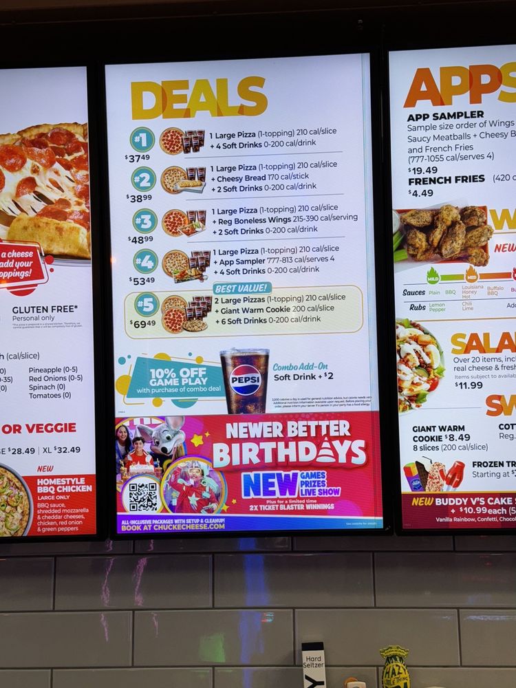 Chuck E. Cheese Modesto Menu (Update 2025)